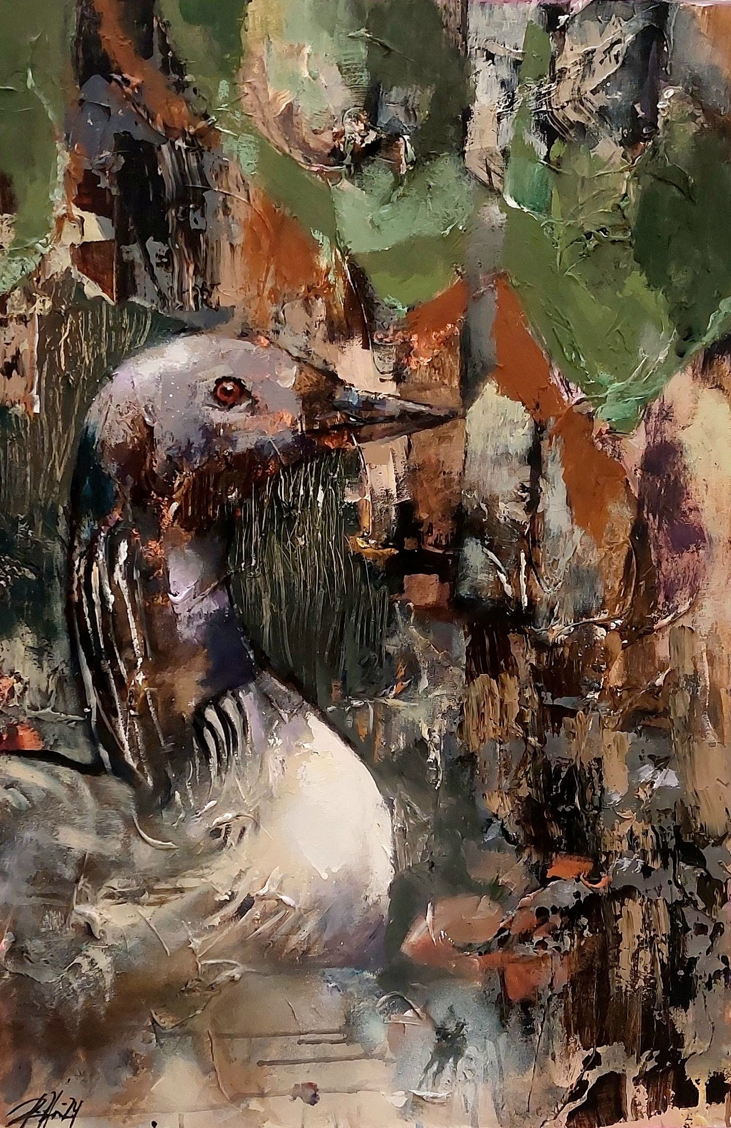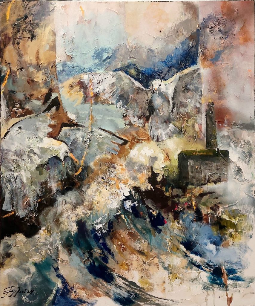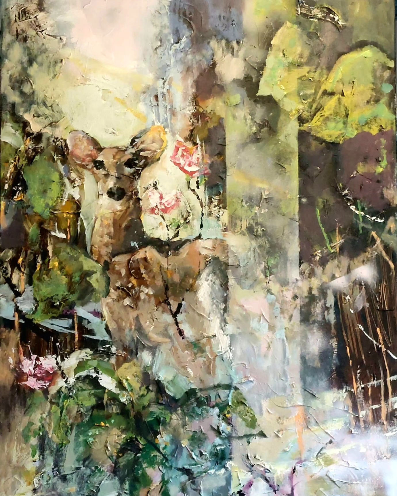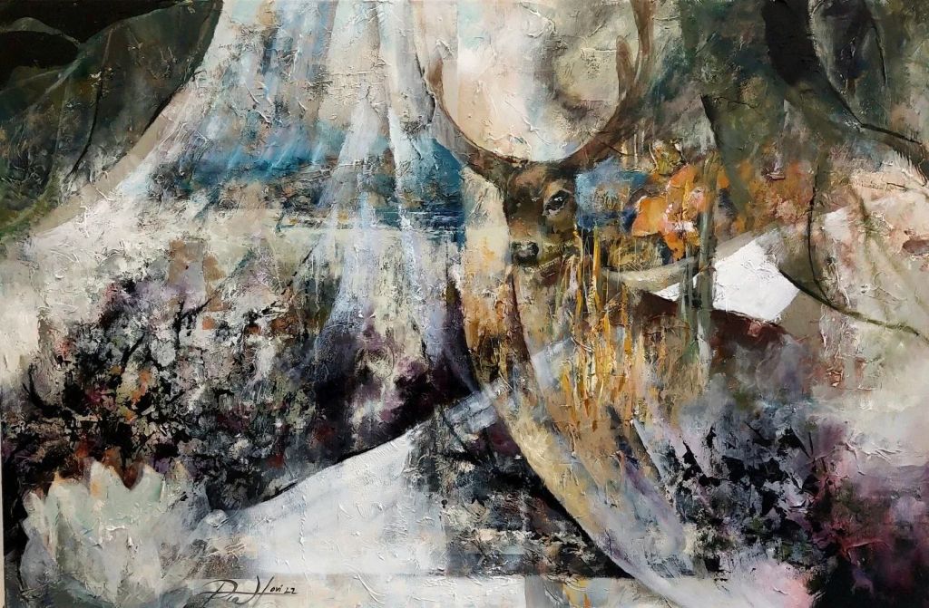 Maalauksillani kerron tarinaa siitä, miten luonnon lukuisat elementit ovat tasavertaisia keskenään ja sulautuvat lopulta yhteen. Sinut katsojana haluan kietoa tähän samaan kokonaisuuteen oman voimasi tunnistaen.
